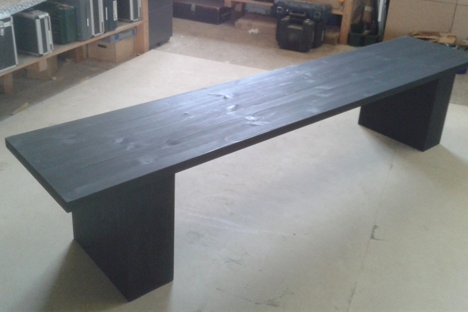 A bench seat for Rebels in Saffron Walden. Constructed from solid pine, the bench has been dyed black. Seat cover pads to be supplied by client.